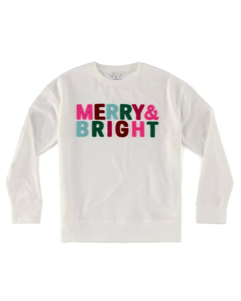 "Merry & Bright" Crewneck in White